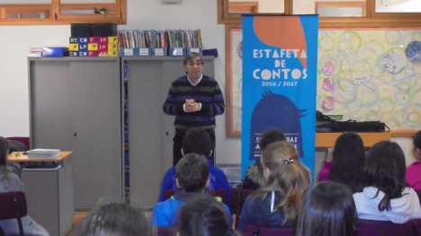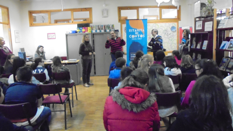 A estafeta de contos Palavras Andarilhas chegou à Biblioteca da Escola Básica de Lamaçães, na sexta-feira, dia 6 de janeiro, pelas 11h45, através de contadores da Universidade Sénior de Matosinhos.