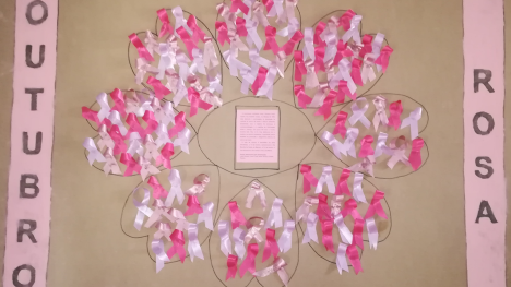 Antecipadamente, foi pedido a todos que, nesse dia, vestissem uma camisola branca ou cor-de-rosa. Nela, os elementos da equipa responsável pela dinamização da atividade colaram um autocolante com a frase: “Eu Adiro ao Outubro Rosa”. Em todas as salas de aulas foi lido um texto sobre a origem e significado deste movimento. Posteriormente, cada aluno fez um laço, com uma fita de cetim cor-de-rosa e colocou-o num painel coletivo.