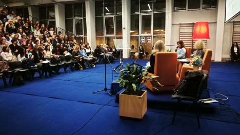 Nesta sessão destaca-se o painel denominado “Incorporação de práticas inovadoras de forma sustentada- leituras cruzadas na Europa”, que será desenvolvido por dois docentes do projecto que frequentaram um curso na Finlândia. Este país continua a ser, entre os países europeus, aquele que tem obtido resultados mais elevados no estudo internacional PISA (estudo comparativo dos níveis das literacias dos alunos nos domínios da literacia da leitura, da matemática e das ciências). Esta sessão conclui um ciclo de formação de professores que abordou diferentes temáticas atuais e potenciadoras de melhores literacias. Estas sessões também deram a conhecer o trabalho desenvolvido no Agrupamento de Escolas D. Maria II, no âmbito do referido projeto e no qual participaram alunos de diferentes idades, do segundo e terceiro ciclos de escolaridade bem como em turmas do ensino secundário. Ao longo do ciclo de formação foram várias as temáticas exploradas: “Aprender e ensinar em contexto europeu – integração de aprendizagens informais no currículo”, “metodologias de Flipped Classroom e multiliteracias. Na sessão do dia 24 de novembro participaram dois grupos de alunos, tendo um grupo dado testemunho de experiencias em aulas de “Flipped Classroom” e o outro grupo ilustrou algumas aplicações das Tecnologias de Informação e Comunicação com finalidades pedagógicas.